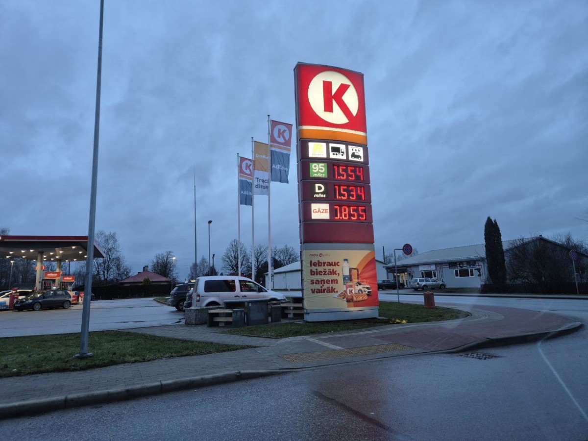 Pie mums Circle K uzpildes stacijā šodien 11. decembrī prasa 1,554 par litru benzīna un 1.534 par litru dīzeļdegvielas.