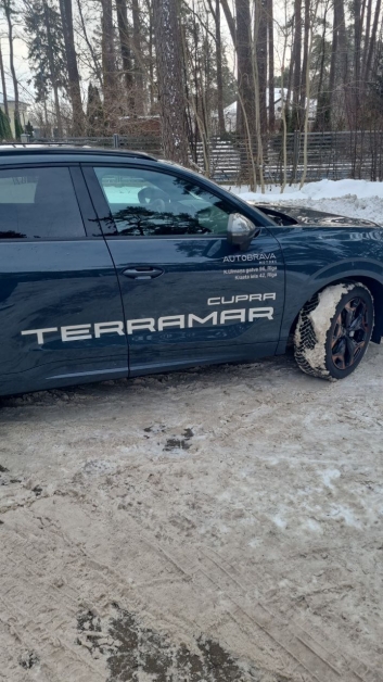 Pie ceļa turas kā pielīmēts. Un ausīm milzu gandarījumu rada viens pogas spiediens - atliek uzspiest braukšanas režīmu Performance vai Cupra, un katru akseleratora pieskārienu pavada skaista un sportiska skaņa, kas gluži kā AMG, tiek radīta mākslīgi, tomēr sajūta ir lieliska. Tā vien gribas ar kādu paskrieties. Bet to gan tikai Biķernieku vai 333 trasē labāk darīt, citādi bez tiesībam un ar lielu robu makā var palikt pavisam viegli. Terramar izaicina braukt dinamiski, nedomājot par degvielas patēriņu. Es gribētu, ka man kādam čomam būtu šādas auto un tad kādā dienā varētu aizņemties “izmest kādu līkumiņu”. Vai pats sev tādu iegādātos, neesmu tik drošs, lai gan cena, manuprāt, ir ļoti pat adekvāta tam, ko sniedz šis auto - par apmēram 40 000 EUR var tikt pie labi aprīkota, dinamiska un ļoti skaista (jau atkal subjektīvi) auto.
