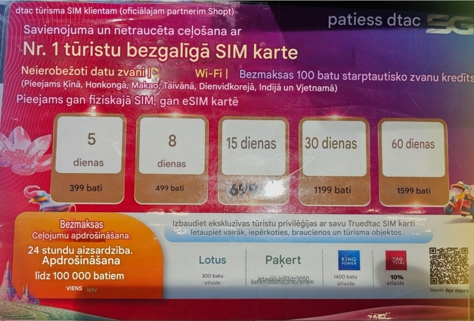 Internetam iesaka šīs vietēǰās tūristu sim kartes uz 2 neddēļam