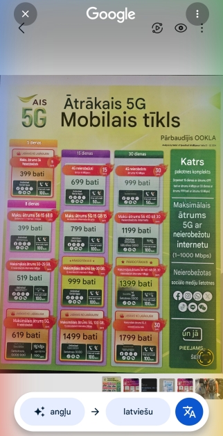 Es izvēlējos uz 15 dienām bez mobilo datu ierobežojuma par 699 bātiem no TRUE