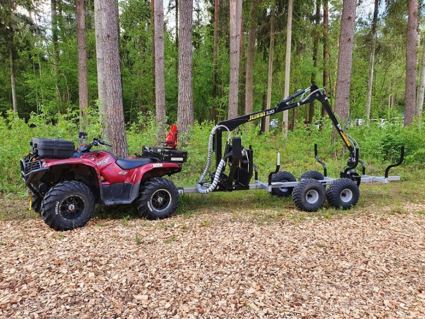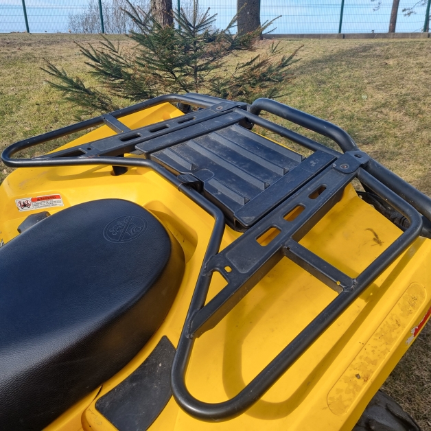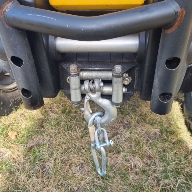 Papildaprikojums-Esmu uzstādijis piekabes āķi ,par cik liels palīgs viņš ir meža un medību saimniecībā,baigi neko daudz nevadāju bet lielākais ir vilkta piekabe 750kg un kādi 300kg krava tajā,un tas apmēram 1T un vilka bez nekādas lielās piepūles.Ir uzstādīta rupnieciski priekšā viņča kuru var vadīt gan no stūres gan no tālvadības pūlts.Papildus drošības dugas un dugas uz kurām var uzstādīt papildus apgaismojumu un kravas koferus.Ir rozete uz 12v.Kā arī viss pārējais kas nepieciešams lai piedalītos kopējā ceļu satiksmē.