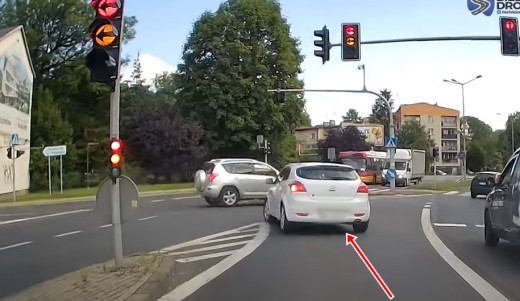 Baltā automobiļa vadītājs startē no luksofora, kad vēl deg sarkanais signāls un liek citiem satiksmes dalībniekiem strauji bremzēt. Lasīt vairāk