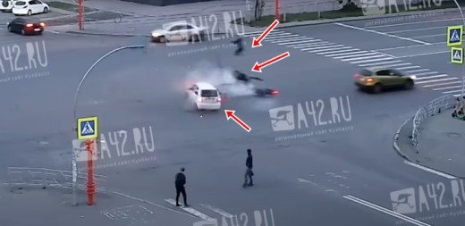 Kemerovā (Krievija) video kameras fiksējušas divu motociklistu sadursmi ar Daewoo Matiz, kas veic kreiso pagriezienu. Lasīt vairāk