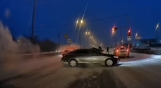 Trīs automašīnu aizsegs nostrādā pasargājot gājējus no ceturtās, kas bremzē par vēlu. Lasīt vairāk
