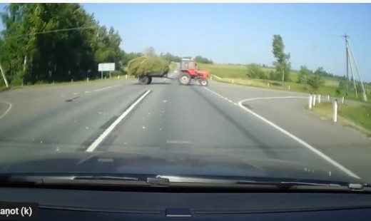 Filmētājs izvairās no traktora, kas lēnām, taču ļoti noteikti dodas sev vēlamajā virzienā. Lasīt vairāk