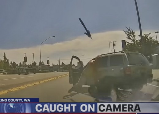 Saniknots autovadītājs ASV izpauž savas emocijas izmetot pa pretinieka mašīnas vējstiklu kaut ko līdzīgu tomahaukam. Lasīt vairāk