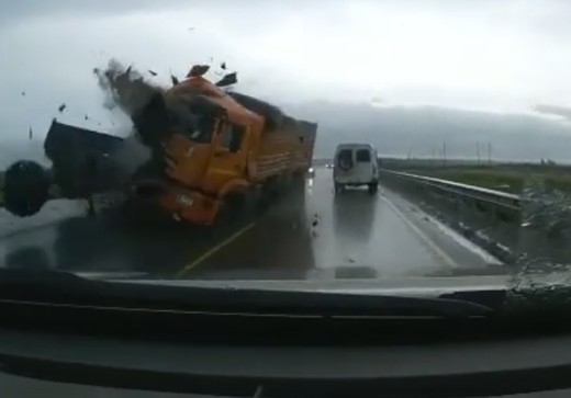 Priekšā braucošais kravas auto nolemj apbraukt uz brauktuves apstājušos busiņu un izraisa smagu sadursmi ar pretim braucošo transportu (no 0:30). Lasīt vairāk