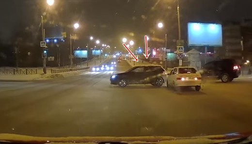 Video autors raksta, ka sieviete pie melnā Nissan stūres Qashqai nobijusies no Land Cruiser, kas aizmugurē signalizējis, tādēļ iebraukusi krustojumā, izraisot avāriju Lasīt vairāk