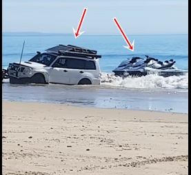 Divi vai pat trīs apvidus auto mēģina izvilkt piekabi ar ūdens motocikliem, taču pārāk labi šai kompānijai neveicas - vispirms iestrēgst viens, tad otrs automobilis un arī motocikls pa brīdim noveļas no piekabes. Lasīt vairāk