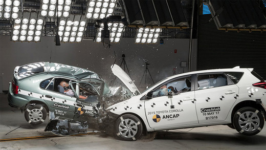 Austrālijas drošības organizācija ANCAP salīdzinājusi 2015.gadā ražotas un 19 gadus vecas Toyota Corolla drošību, liekot abiem spēkratiem satikties improvizētā avārijā, kas notiek pie ātruma 64 km/h. Lasīt vairāk