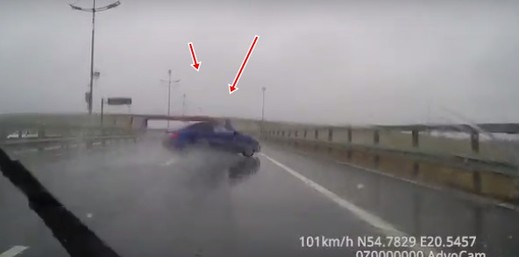 Pa kreiso joslu braucošā auto vadītājs acīmredzot negaida, ka stipra lietus laikā uz brauktuves var izveidoties peļķes. Iebraucot šādā vietā, viņš netiek galā ar vadību un piedzīvo avāriju. Lasīt vairāk