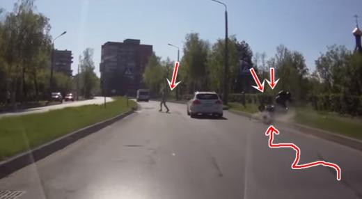 Laikam jau šim braucējam tiesības izdotas par ātru - motociklists pilsētā brauc pārāk ātri un nav gatavs tam, ka citi satiksmes dalībnieki var piebremzēt, lai palaistu gājējus. Lasīt vairāk