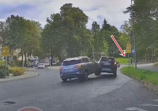 Autovadītājs, kurš izbrauc no apļa nav gatavs tam, ka priekšā esošie transportlīdzekļi apstāsies, lai palaistu gājēju uz pārejas. Lasīt vairāk