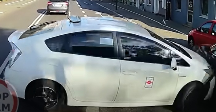 Apgriežoties nevietā, taksometra vadītājs saduras ar Mazda, kas uztriecas ielas malā stāvošajai Toyota. Lasīt vairāk