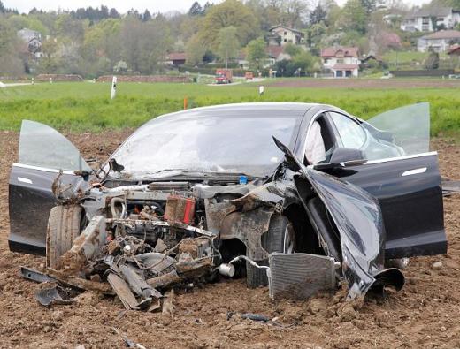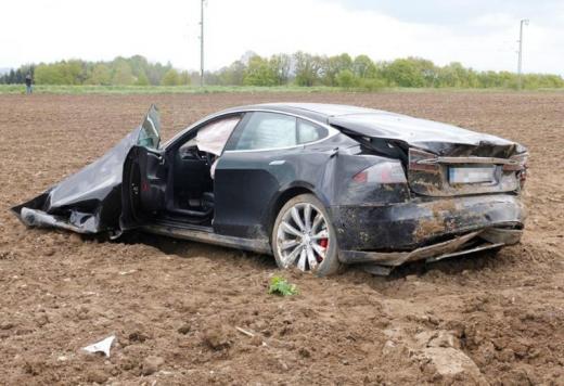 Pieci jaunieši no Vācijas pilsētas Pullahas piedzīvojuši smagu avāriju ar elektromobili Tesla Model S, kas piederēja autovadītājas tēvam.