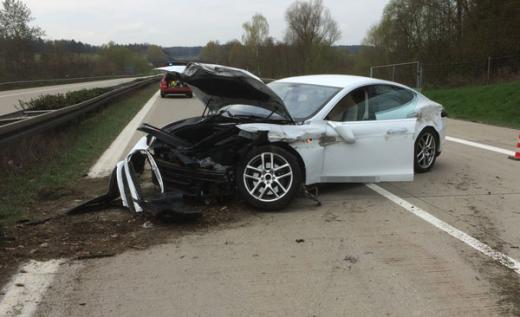 Tikai dažas nedēļas pirms tam kāda sieviete ar Tesla Model S avarēja Abensbergas tuvumā, ietriecoties ceļa joslas atdalošajās barjerās (apakšējais attēls). Arī šajā gadījumā automašīna būs jānoraksta, bet autovadītāja guvusi vieglus ievainojumus.