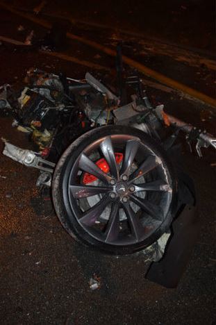 Aizokeāna mediji vēsta, ka nelaime notikusi brīdī, kad vadītājs zaudējis kontroli pār spēkrata vadību un tas nobraucot no ceļa ietriecies kokā. Trieciens bijis tik spēcīgs, ka daļēji izjaukta elektroautomobiļa konstrukcija un aizdedzies litija-jonu akumulatora bloks. Notikuma vietā ieradās ugunsdzēsēji, taču viņu darbu apgrūtināja eksplozijas (sk.video) ik pa brīdim uzejot gaisā kārtējai litija jonu baterijai. Litija jonu akumulatori deg ļoti ilgi (pat 24 stundas), tādēļ elektromobiļu ražotāji pat rekomendē aizdegušās mašīnas nedzēst, bet nogaidīt, kamēr tās izdeg.