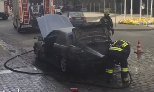 Šodien Rīgā, Dzirnavu ielā, aizdegusies ar gāzes iekārtu aprīkota BMW 3.sērijas automašīna.