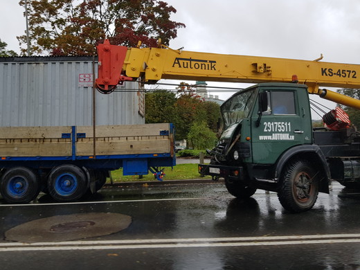Šopēcpusdien Jūrmalā, pretī Majoru stacijai notikusi divu transportlīdzekļu sadursme - kompānijas "Autonik" autoceltnis ietriecies tās pašas kompānijas kravas automašīnas puspiekabē.