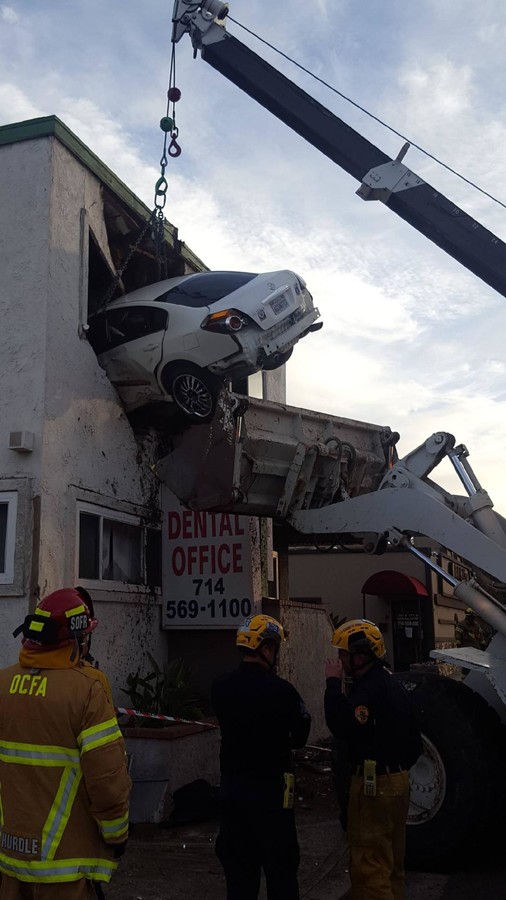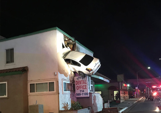 ASV pilsētā Santa Anā (Kalifornija) noticis neparasts satiksmes negadījums – vieglais automobilis ietriecies stomatologa kabinetā, kas atrodas kādas ēkas otrajā stāvā.