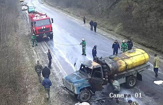 Ukrainas pilsētas Kremeņecas tuvumā apgāzies un aizdedzies ar gāzes iekārtu aprīkots GAZ-53 pienvedējs. Laimīgā kārtā šoferis paguvis izlēkt no kabīnes, gūstot vien vieglus roku un sejas apdegumus (no 0:33).
