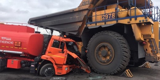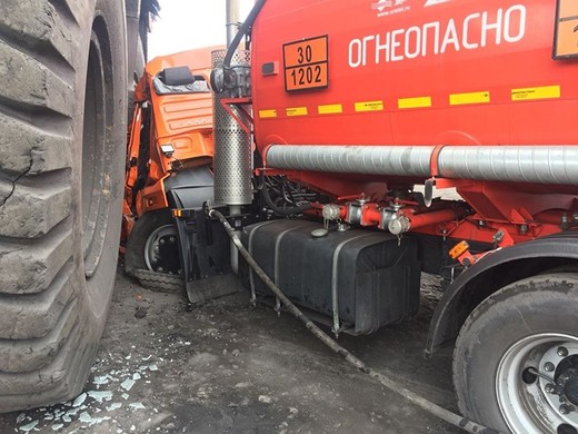 Kemerovas apgabalā Belaz lieltonnāžas kravas auto, ko vadījusi 38 gadus veca sieviete, uzbraucis Kamaz autocisternai, sadragājot tās kreisos sānus.