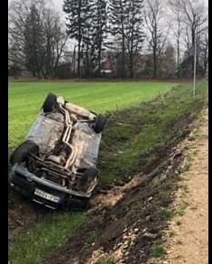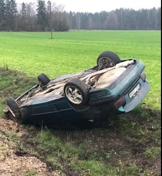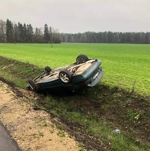 Mārupē avarējis vieglais automobilis, aculiecinieki apgalvo, ka īpašnieks tam vēl nebija uzlicis ziemas riepas.