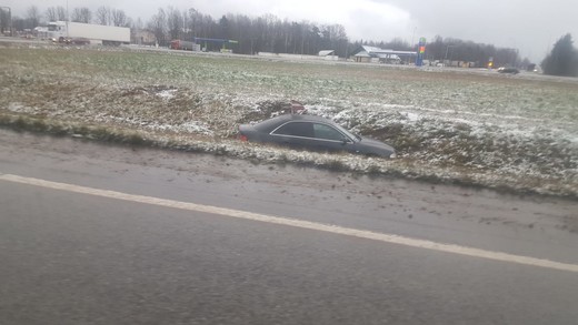 Aculiecinieks iesūtījis attēlus, kuros redzams grāvī iebraucis vieglais auto. Negadījums pie Tukuma apļa šodien (28.12), iespējams, noticis nelabvēlīgo braukšanas apstākļu dēļ.