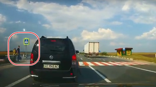 Video autors saduras ar Nissan Pathfinder, kura vadītājs vienīgais nobremzē, lai palaistu gājējus. Lasīt vairāk
