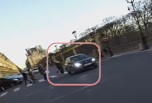Video no Parīzes - motociklists salaveča tērpā kļūst par liecinieku avārijai, kad uz gājēju pārejas „Renault” markas spēkrats notriec cilvēku. Lasīt vairāk