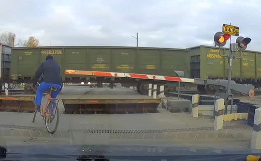 Velosipēdists riskē ar dzīvību dažu minūšu dēļ. Rezultātā viņš knapi izvairās no sadursmes ar vilcienu, kas spiests bremzēt un pilnībā apstāties, lai noskaidrotu starpgadījuma apstākļus. Lasīt vairāk