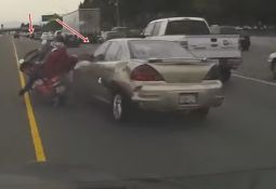 Divi motobraucēji, kas ceļā devušies bez ekipējuma, piedzīvo kritienu, sabīstoties no automašīnas, kuras vadītājs bremzē pēdējā mirklī. Lasīt vairāk