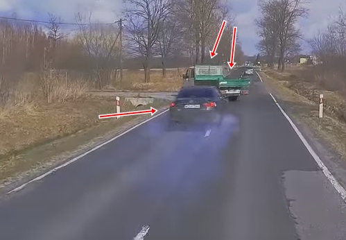"Lexus" vadītājs, kurš ar savu spēkratu apdzīšanas manevru uzsācis cita transportlīdzekļa "aizsegā", tikai pēdējā momentā pamana "VW" kravinieku, kas griež pa kreisi. Lasīt vairāk