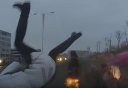 Video autors ignorē ziemas apstākļus un traucas ar savu spēkratu pa šoseju ar ātrumu 140 km/h. Viss ir labi līdz brīdim, kad ceļa apstākļi kādā līkumā izmainās. Lasīt vairāk