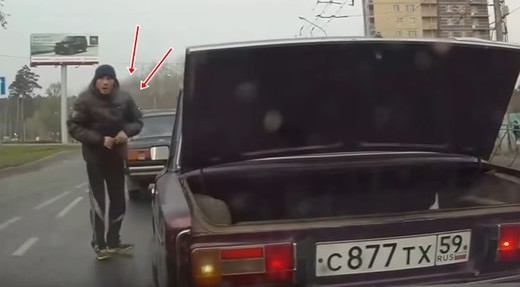 Žigulīša šoferis remontē savu spēkratu ielas vidū, pirms tam pat nepapūloties ieslēgt avārijas gaismas vai izlikt trīsstūri. Jādomā, ka par noteikumiem nekas nav dzirdēts, jo viņš rādās patiesi izbrīnīts, kad VAZ aizmugurē ieskrien cits automobilis. Lasīt vairāk
