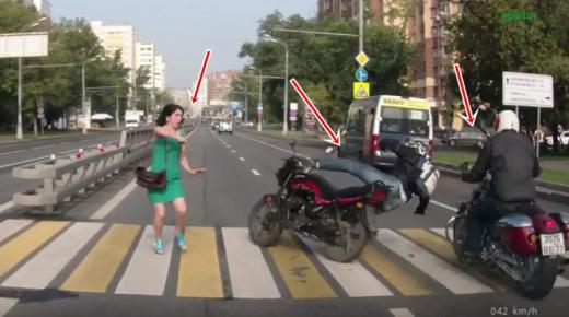 Divi motociklisti ir atšķirīgās domās par to, vai šajā epizodē pie gājēju pārejas ir nepieciešams apstāties. Lasīt vairāk