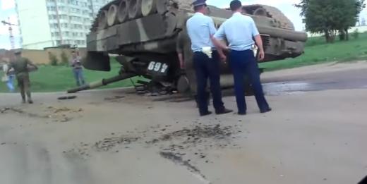 Piemaskavā no armijas kravas vilcēja treilera izkritis un "uz mutes" apgāzies krievu armijas tanks T80. Aculiecinieki stāsta, ka kaujas mašīna izkritusi tādēļ, ka vilcējam pārsprāgusi riepa un auto nevarējis iegriezties līkumā. Lasīt vairāk