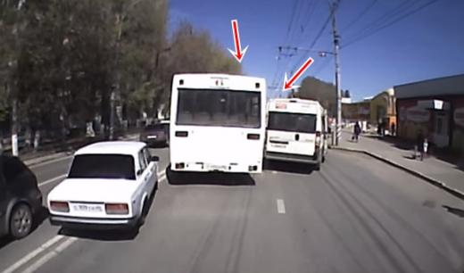 Autobuss nespēj vai negrib apbraukt mikroautobusu, kas apstājies pārkāpjot noteikumus. Lasīt vairāk