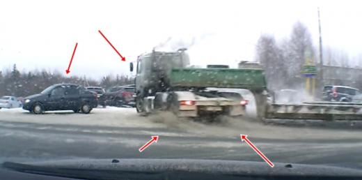 Ieraugot priekšā šķērsli, vieglais auto parāda labo pagriezienu, taču paātrināties un apsteigt kravas furgonu tā arī neiedrošinās. Pēdējā brīdī nospiestās bremzes situāciju neglābj un no sadursmes izvairīties neizdodas. Iespējams, citi situāciju redz savādāk, jo video oriģinālais paraksts skan "neļāva pagriezties." Lasīt vairāk