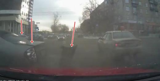Autovadītājs, kas ātrāk par citiem startē no pretējās puses, krustojuma centrā saduras ar automobili, kas no tā vēl nav paguvis izbraukt. Rezultātā cieš arī spēkrats, kurā uzstādīts video reģistrators. Lasīt vairāk