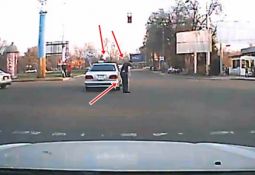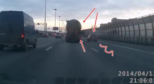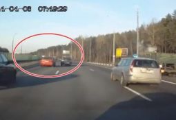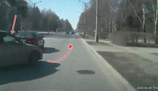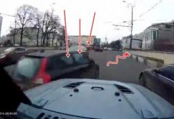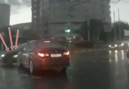 Sedans, kas izgriežas no kreisās puses, iebrauc labajā joslā un izraisa sadursmi ar automašīnu, kurā uzstādīts video reģistrators. Lasīt vairāk