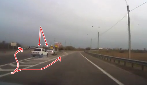 UAZ veic kreiso pagriezienu, nemanot, ka garām visai rindai traucas "lidotājs" (skatīt no 0:28). Lasīt vairāk
