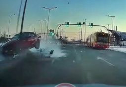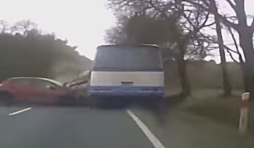 Mēģinot izvairīties no avārijas, autobusa šoferis pagriež stūri pa labi. Sadursme tomēr notiek un autobuss nobrauc no ceļa. Lasīt vairāk