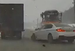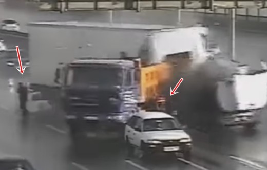 Kravas vilcējs uzbrauc stāvošam Kamaz (+ VIDEO) 13