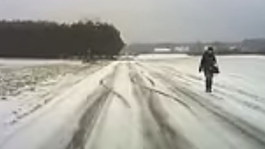 Video autors nespēj savaldīt auto brīdī, kad nedaudz pārkārtojas, lai dotu vairāk vietas gājējam. Lasīt vairāk