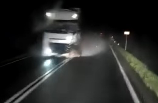 Priekšā braucošais vieglais auto saduras ar kravinieku, kā rezultātā "fūrei" plīst riepa (vai tiek bojāta piekare) un smagsvars iebrauc pretējā joslā. Lasīt vairāk