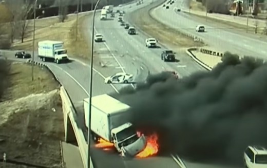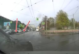 Izbraucot uz galvenā ceļa, vieglā automobiļa vadītājs izslīd priekšā kravas furgonam, kas sagriežas un triecas barjerās. Lasīt vairāk