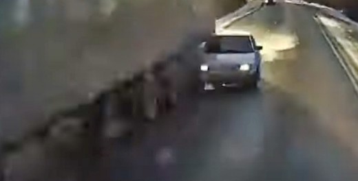 Vieglās automašīnas vadītājs redz, ka nepaspēs apdzīt, uzsāk strauju bremzēšanu, taču atgriežoties savā joslā, saduras ar "fūres" piekabi un tiek izmests priekšā filmētāja auto. Lasīt vairāk