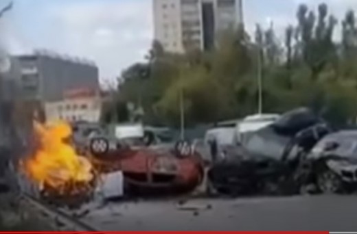 Pēc piecu automobiļu sadursmes, ko izraisa BMW vadītājs, kas iebrauc pretējā joslā, redzama aina, kas nereti skatāma Nascar sacīkstēs. Lasīt vairāk