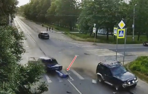 Pēc sadursmes žigulīša stūrētājs attopas uz ielas, mirkli vēlāk izkāpj arī pasažiere. Lasīt vairāk